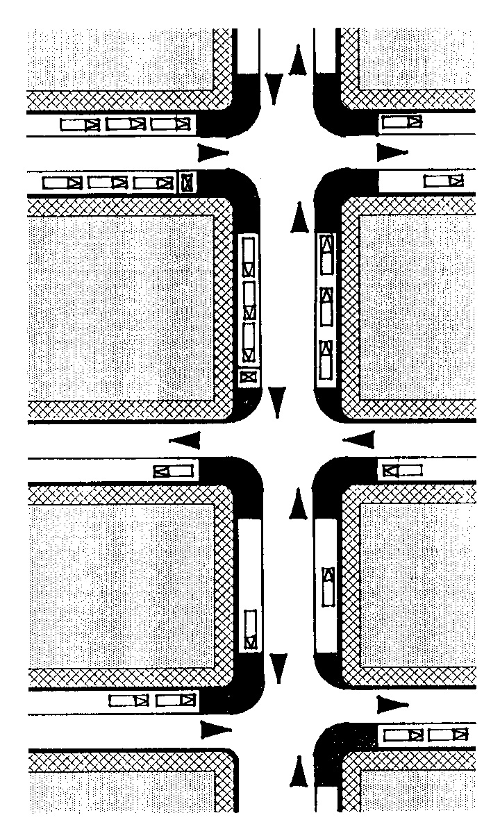 «Το σκιτσάκι τα λέει (σχεδόν) όλα. Το σύστημα είναι τυχαίο, ένας δρόμος δύο κατευθύνσεων, που συναντιέται με τρείς μονοδρόμους. Το σχέδιο δεν είναι υπό κλίμακα. Για να εφαρμοστεί προϋποθέτει ότι: