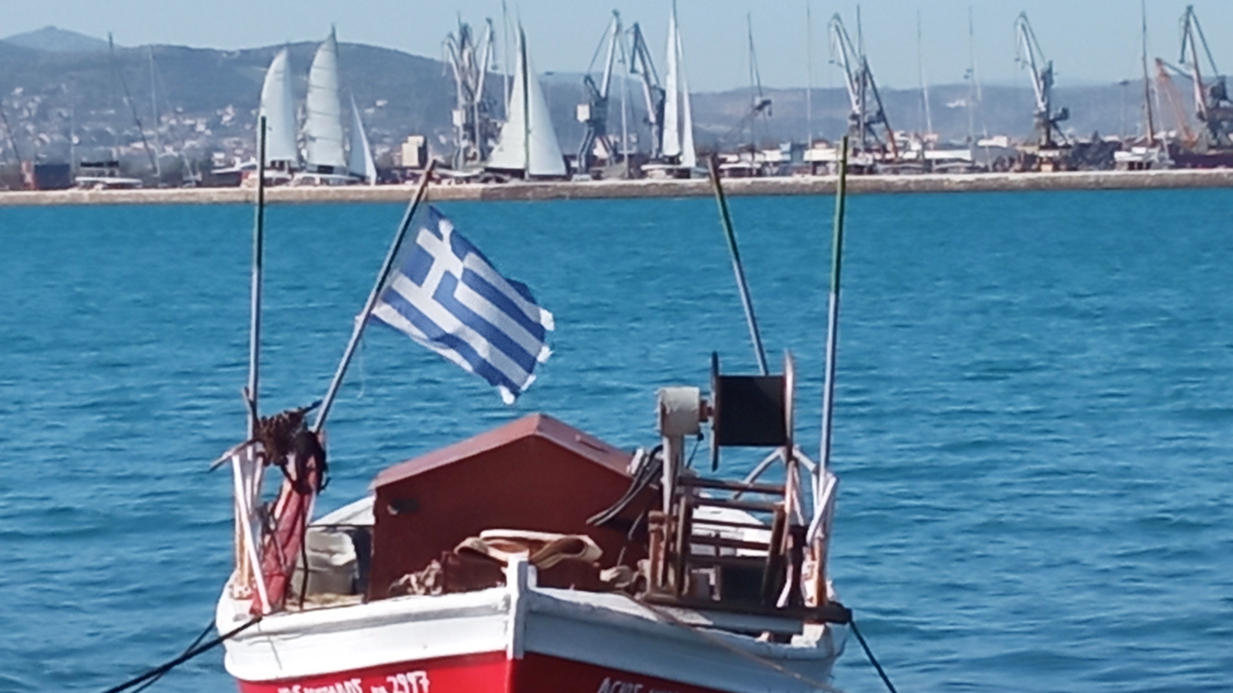 Στην φωτογραφία η ελληνική βαρκούλα έξω από τον Άγιο Κωνσταντίνο.