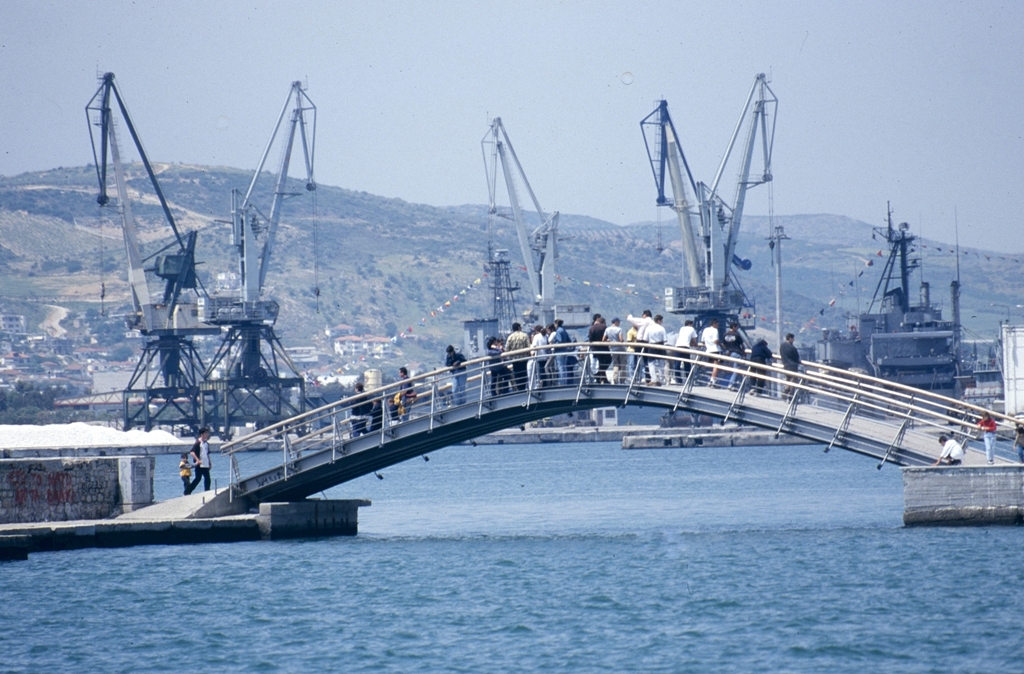 Στην φωτογραφία το γεφυράκι στον κυματοθραύστη, κατασκευής 1996, φωτογραφημένο με κόσμο, το 1999, φωτο ΧΣ.