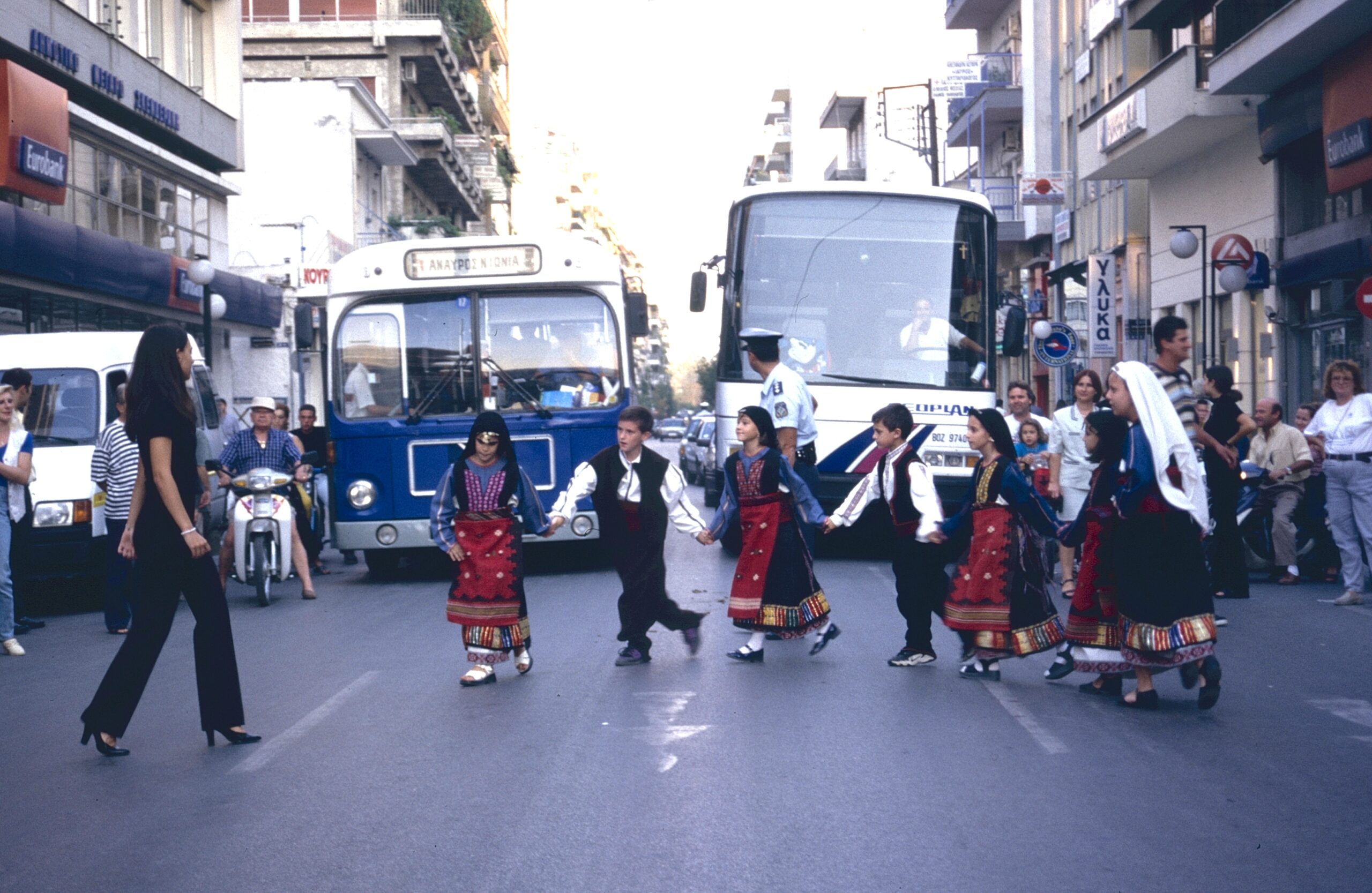 Στην φωτογραφίαμια μακρινή ανάμνηση. Ημέρα χωρίς Αυτοκίνητο, 22 Σεπτεμβρίου 2000, τα παιδάκια χορεύουν μέσα στην οδό Δημητριάδος(!), φωτο ΧΣ.