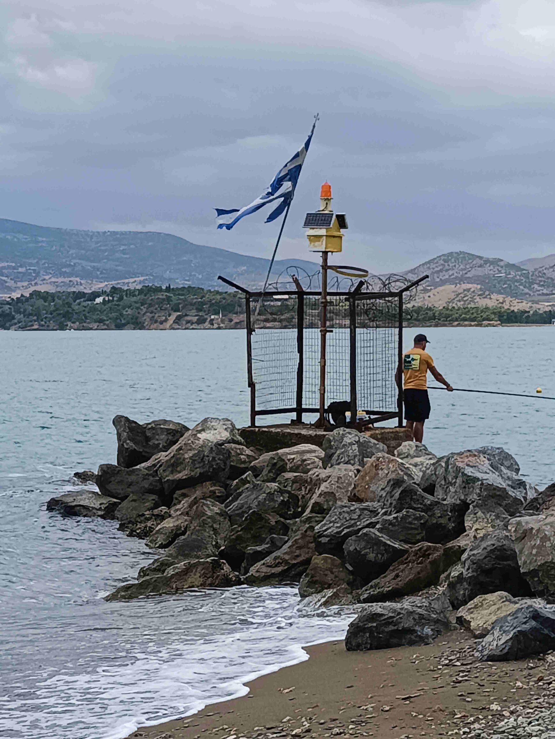 Στην φωτογραφία μια εικόνα από τον Άναυρο 27.09.2025. Ένας «φάρος» και μια κουρελιασμένη σημαία. Και καλή ψαριά. Φωτο ΧΣ.