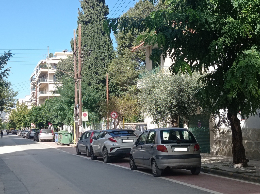 Στην ιδιόχειρη φωτογραφία ο «ποδηλατόδρομος» στην οδό Ρήγα Φεραίου, μπροστά στην Φραγκόκλησα.