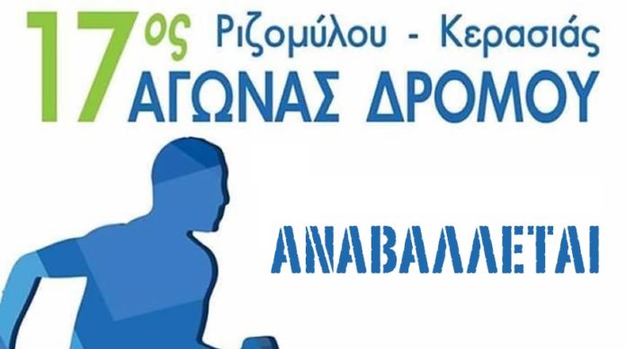 Η ανακοίνωση του Δήμου Ρήγα Φεραίου έχει ως εξής: «Ο προγραμματισμένος για τις 22 Μαρτίου 2020 Αγώνας Δρόμου Ριζόμυλος- Κερασιά και οι παράλληλοι αγώνες αναβάλλονται για τις 20 Σεπτεμβρίου 2020, λόγω της γενικότερης αναβολής όλων των αθλητικών εκδηλώσεων της Περιφέρειας Θεσσαλίας εξαιτίας των μέτρων πρόληψης».