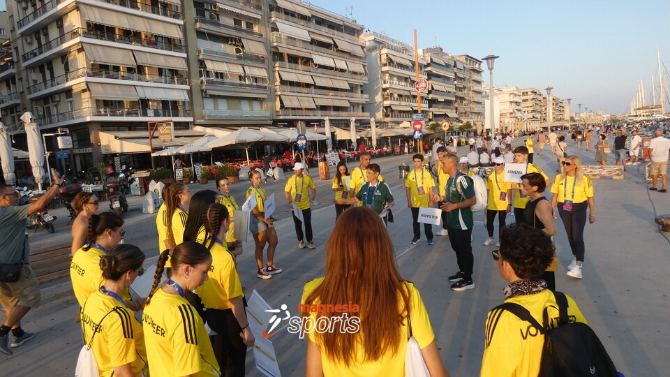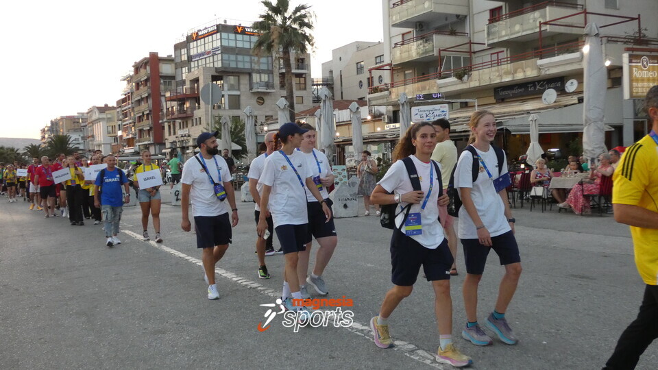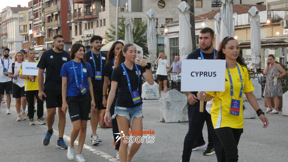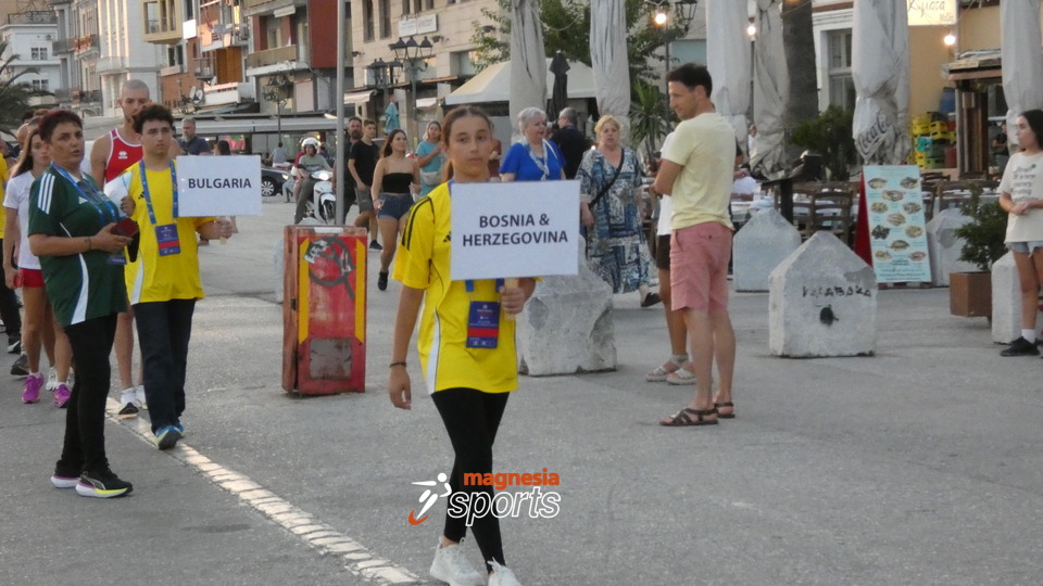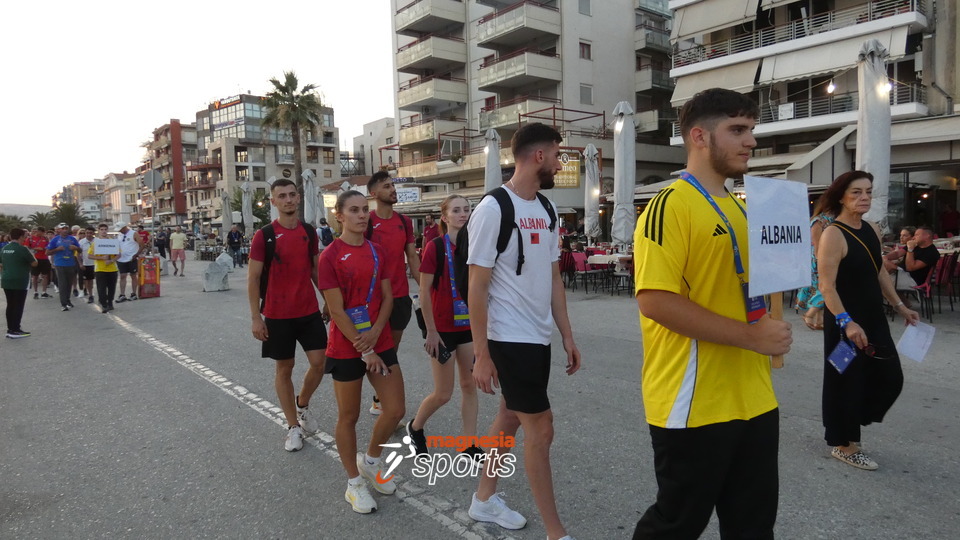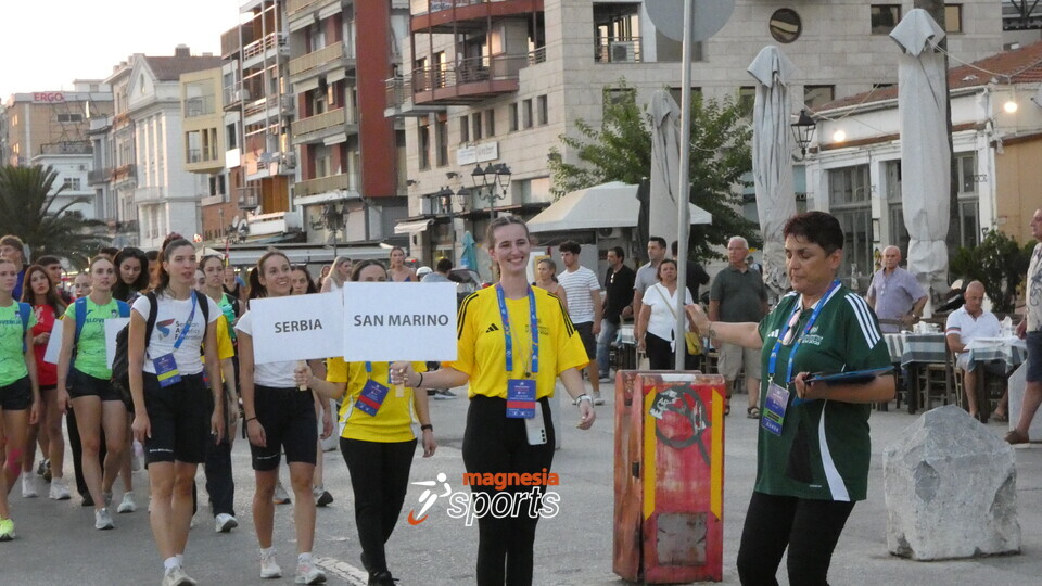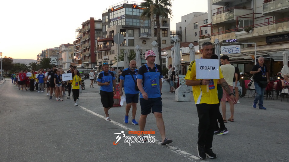 Εκπρόσωποι των αποστολών των 22 χωρών παρέλασαν στην παραλία, με τους Βολιώτες και τις Βολιώτισσες να χαρίζουν ένα θερμό χειροκρότημα στις εκατοντάδες αθλητών και αθλητριών που βρίσκονται ήδη στην πρωτεύουσα της Μαγνησίας.