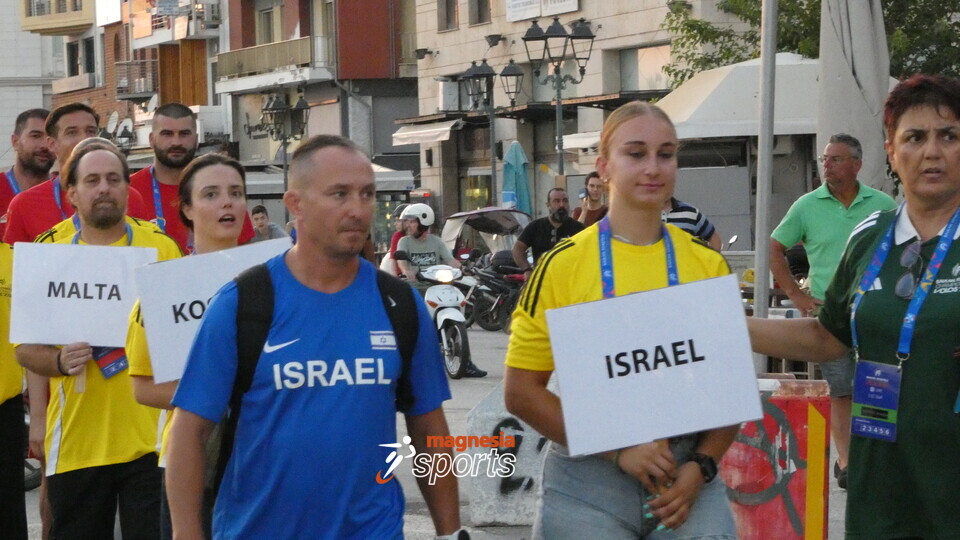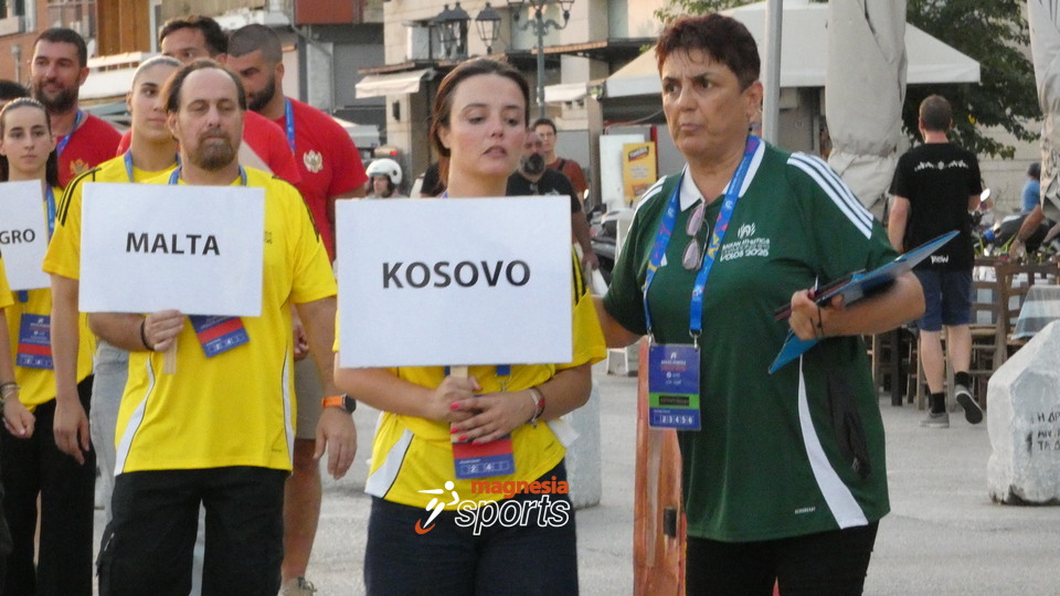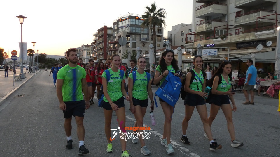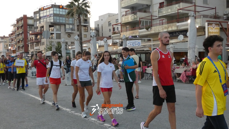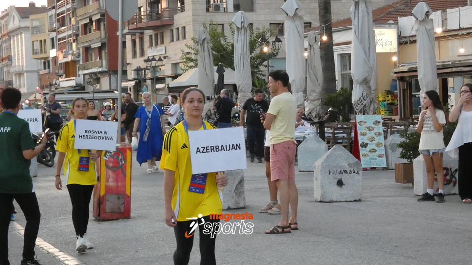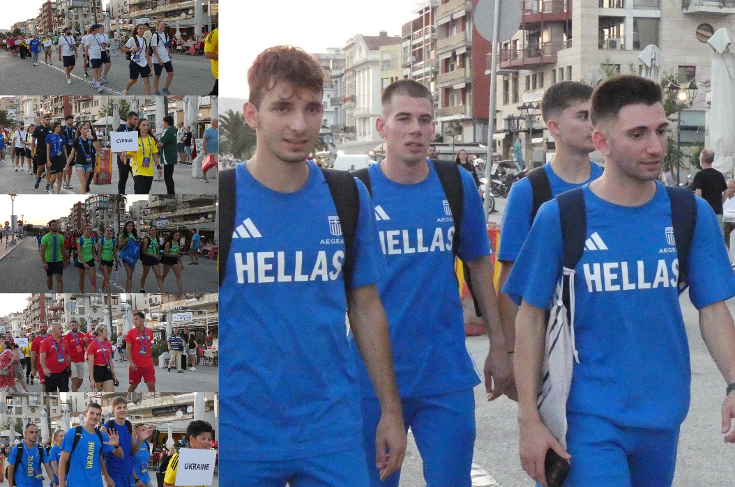 Εκπρόσωποι των αποστολών των 22 χωρών παρέλασαν στην παραλία, με τους Βολιώτες και τις Βολιώτισσες να χαρίζουν ένα θερμό χειροκρότημα στις εκατοντάδες αθλητών και αθλητριών που βρίσκονται ήδη στην πρωτεύουσα της Μαγνησίας.