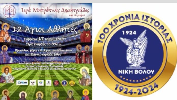Από τη μεριά τη η Ιερά Μητρόπολη Δημητριάδος τονίζει: «12 Άγιοι, 12 Αθλήματα. Για πρώτη φορά 12 σύλλογοι ενώνουν τις δυνάμεις τους για μία μέρα για έναν σκοπό, για έναν αγώνα. Για το ευ αγωνίζεσθαι, για την ευγενή άμιλλα, για τα παιδιά. 12 Άγιοι αθλητές. Η Ιερά Μητρόπολη Δημητριάδος και Αλμυρού προσκαλεί τα παιδιά των Κατηχητικών των Σχολείων στο προαύλειο του Ιερού Ναού Αγ. Κωνσταντίνου και Ελένης να γνωρίσουν δώδεκα αγίους του τόπου μας σαν «φύλακες» 12 αθλημάτων. Σάββατο 17 Μαΐου στις 11 το πρωί στον Ιερό Ναό Αγ. Κωνσταντίνου και Ελένης. Μη λείψει κανείς».