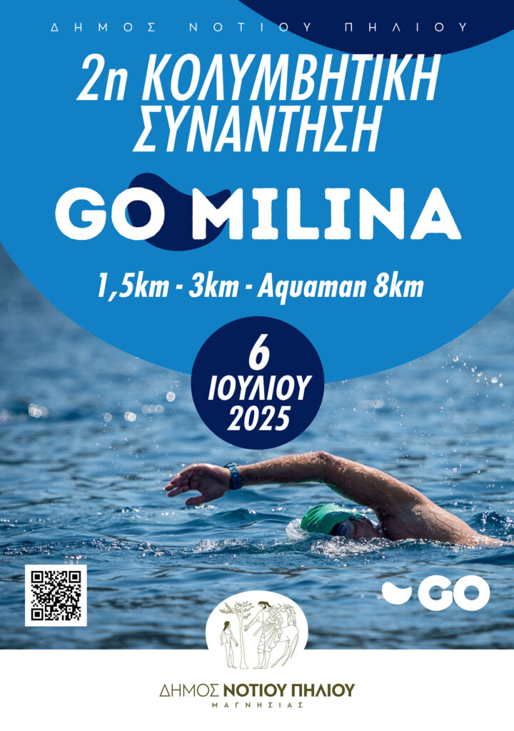 Το 2ο GO MILINA τελεί υπό την αιγίδα του Δήμου Νοτίου Πηλίου και φέρει τη διοργανωτική σφραγίδα της Goevents, συνδυάζοντας το φυσικό τοπίο με τον δυναμισμό της υπαίθρου και τη χαρά της συμμετοχής. Το GO MILINA που συνδιοργανώνει ο Δήμος Νοτίου Πηλίου με την GOEVENTS προάγει τη βιώσιμη ψυχαγωγία, τον ενεργό τρόπο ζωής και τη γνωριμία με τις φυσικές ομορφιές του Νοτίου Πηλίου, αποτελώντας σημείο συνάντησης για κατοίκους, επισκέπτες και αθλητές κάθε επιπέδου.