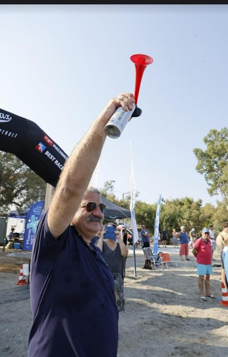 Ο Δήμαρχος Νοτίου Πηλίου, Μιχάλης Μιτζικός, καλωσόρισε τους κολυμβητές κι έδωσε την εκκίνηση του αγώνα.