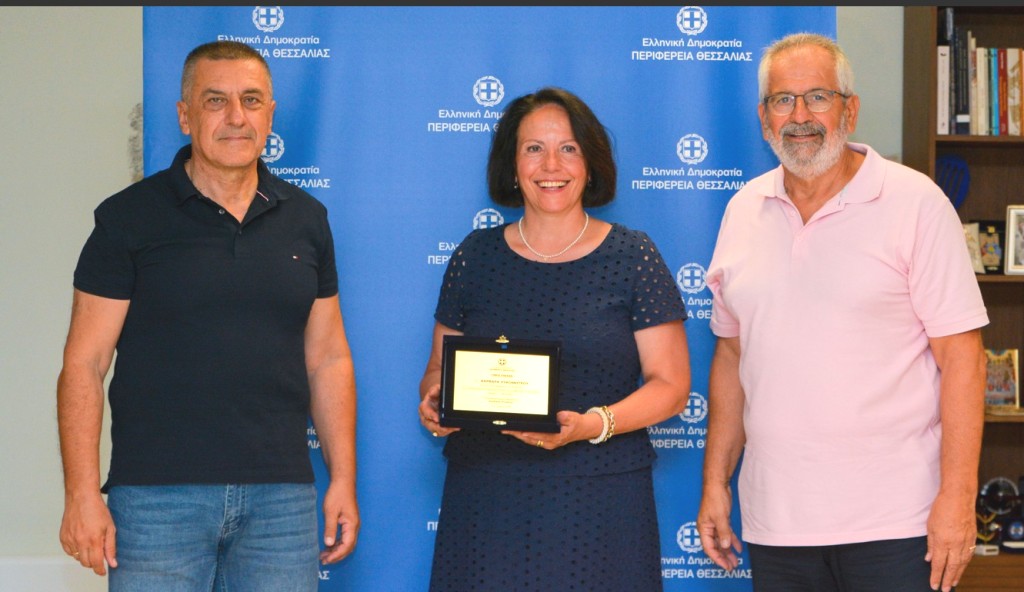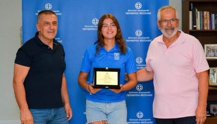 Η Ελένη Διαβάτη του Ναυτικού Ομίλου Βόλου Αργοναύτες και η Βολιώτισσα στην καταγωγή Βάλια Λυκομήτρου του Ν.Ο. Θεσσαλονίκης βραβεύτηκαν από τον Περιφερειάρχη Θεσσαλίας, κ. Δημήτρη Κουρέτα, στο γραφείο του, για τα χρυσά μετάλλια που κατέκτησαν στο πρόσφατο Παγκόσμιο Πρωτάθλημα Κωπηλασίας Εφήβων/Νεανίδων. Η Ελένη Διαβάτη έδωσε η ίδια το παρών, ενώ δεν μπόρεσε να παραβρεθεί η Βάλια Λυκομήτρου και την πλακέτα της παρέλαβε η θεία της, Μαρία Λυκομήτρου.
