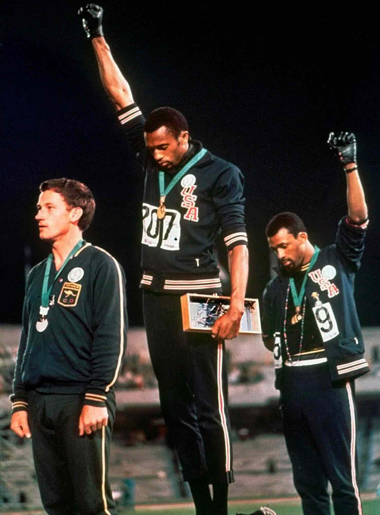 Η ΔΟΕ επέμενε στον «no politica» χαρακτήρα των Αγώνων, αλλά οι Αμερικανοί αθλητές Τόμι Σμιθ και Τζον Κάρλος -1ος και 3ος αντίστοιχα στα 200 μέτρα- κατά την ανάκρουση του εθνικού ύμνου των ΗΠΑ στην τελετή απονομής στάθηκαν με υψωμένη τη γροθιά φορώντας μαύρα γάντια και κατεβασμένο το κεφάλι, σε ένδειξη διαμαρτυρίας για τις φυλετικές διακρίσεις στις ΗΠΑ.