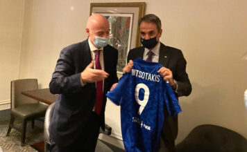 Ο Ινφαντίνο έδωσε στον Μητσοτάκη τη φανέλα με το Νο9 και… κάρτες