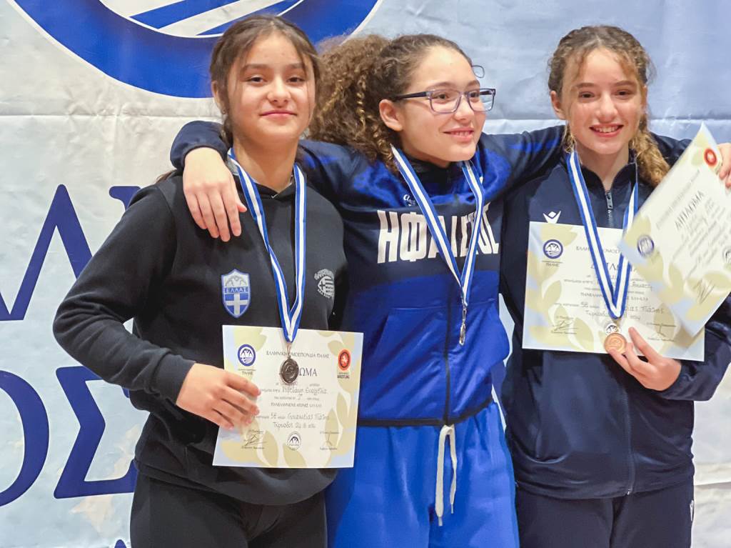 Στο αγωνιστικό κομμάτι η Κυρτσάκη Ευαγγελία και η Σταμούλη Εβελίνα κατέλαβαν την δεύτερη θέση και κατέκτησαν το ασημένιο μετάλλιο.