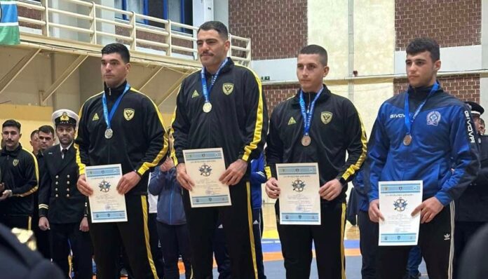 Ο Κωνσταντίνος Κολίτσας του Ολυμπιονίκη Βόλου πήρε το ασημένιο μετάλλιο στο πρωτάθλημα Πάλης Ενόπλων Δυνάμεων.