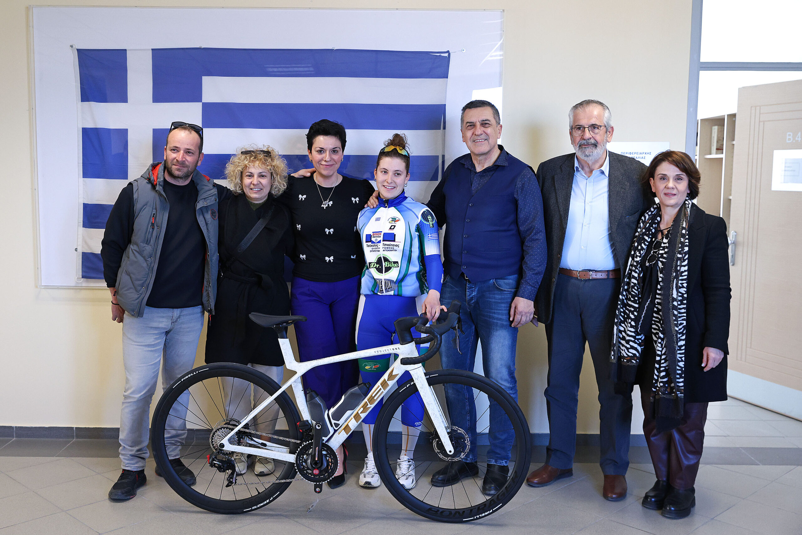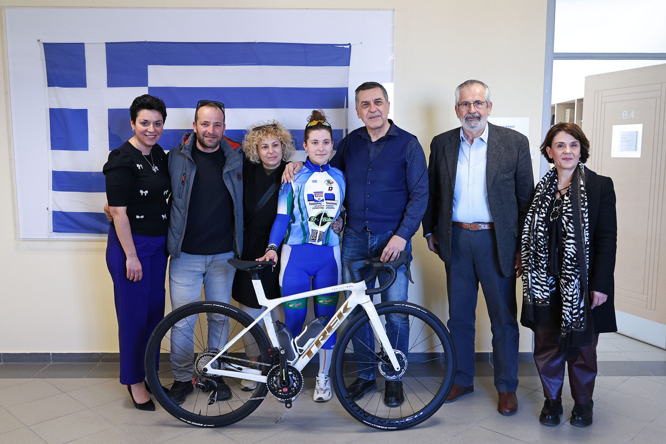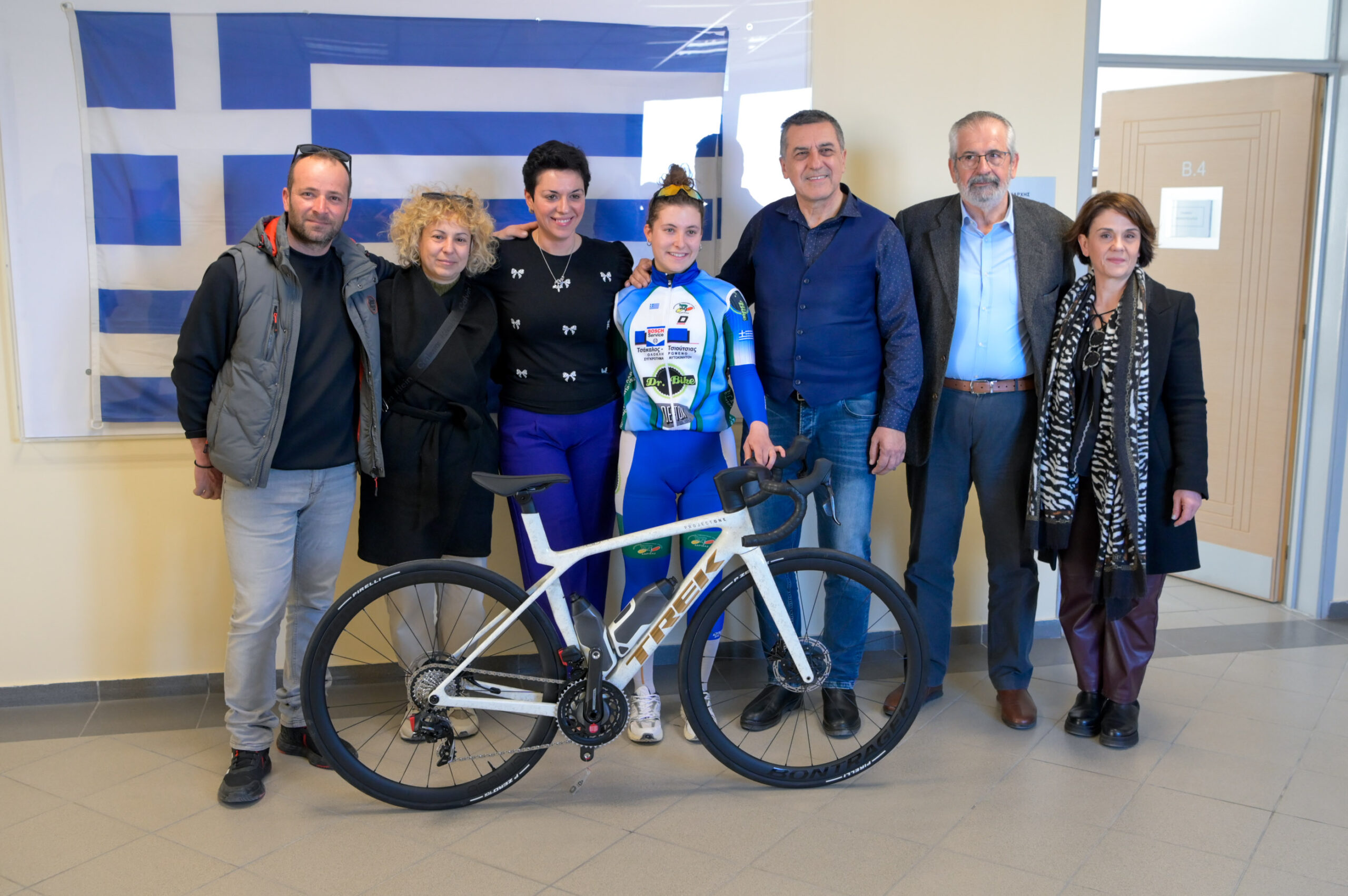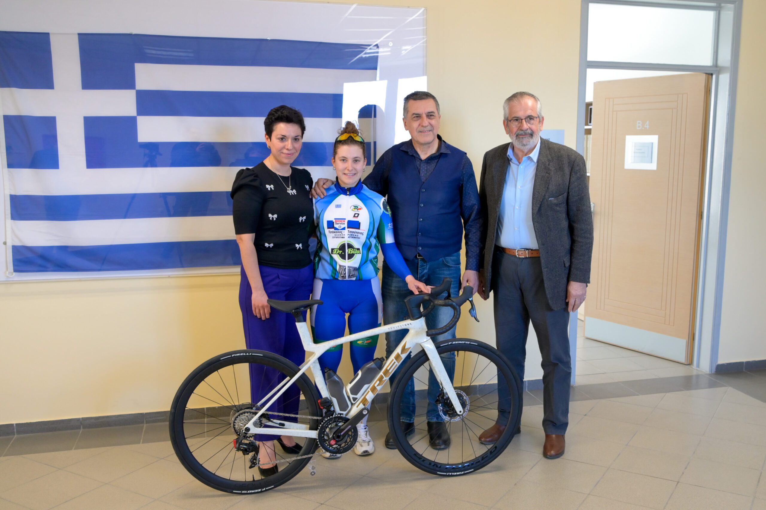 Η Ελένη Κασκάνη απευθύνθηκε πριν από καιρό στον Περιφερειάρχη Δημήτρη Κουρέτα αναζητώντας στήριξη στην προσπάθεια της για διακρίσεις στην αγωνιστική ποδηλασία. Έχοντας στο πλευρό της την κ. Ελένη Σπυράκη, πρόεδρο του Μορφωτικού Συλλόγου Καρυάς (ΜΕΣΚ Όλυμπος), της ιδιαίτερης πατρίδας της, το αίτημα της εισακούστηκε και σε πρόσφατη συνάντηση τους στο κτήριο της Περιφέρειας Θεσσαλίας στη Λάρισα έλαβε το πολυπόθητο δώρο.