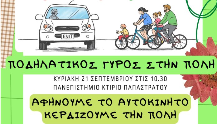Την Κυριακή 21 Σεπτεμβρίου, στα πλαίσια εορτασμού της Ευρωπαϊκής Ημέρας χωρίς Αυτοκίνητο, θα πραγματοποιηθεί ποδηλατικός γύρος στην πόλη του Βόλου με τη δυνατότητα συμμετοχής πολιτών, κάθε ηλικίας, με αφετηρία και τερματισμό το Πανεπιστήμιο Θεσσαλίας σύμφωνα με την κάτωθι διαδρομή (ώρα συνάντησης 10.30):