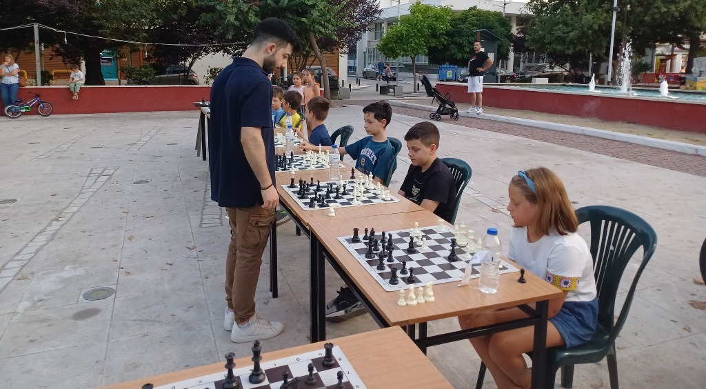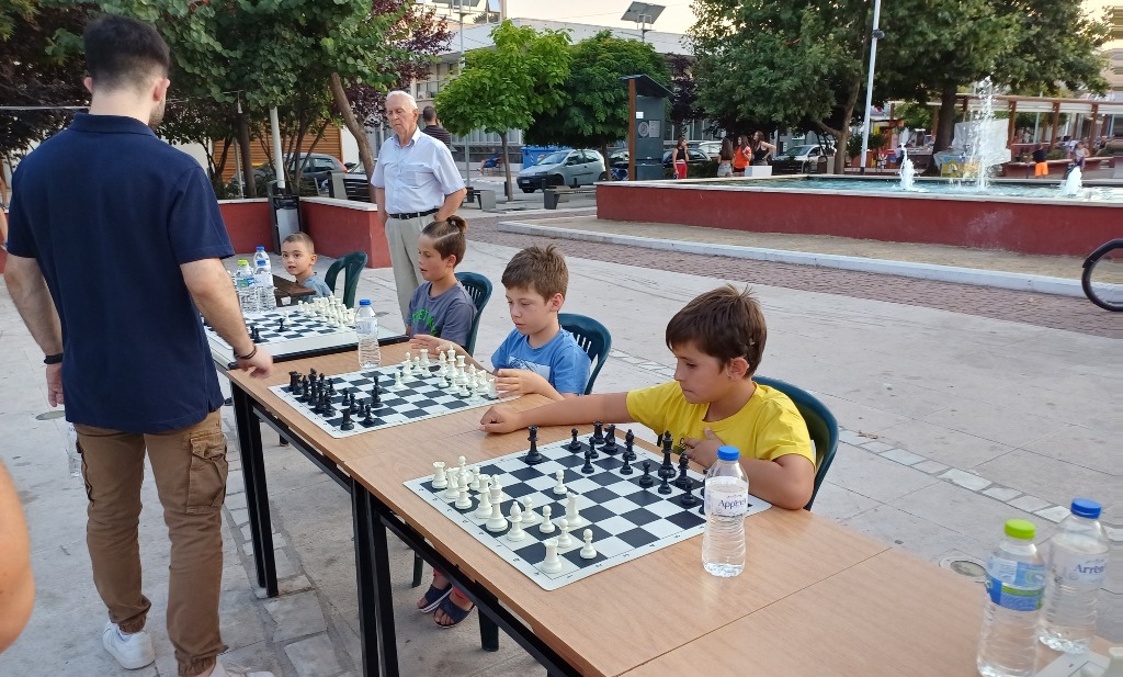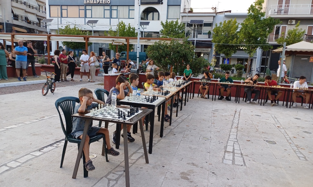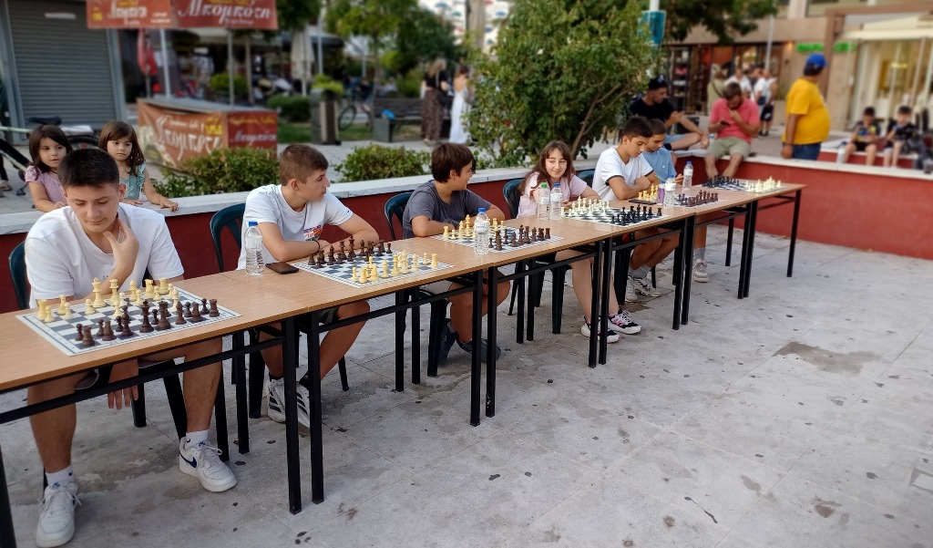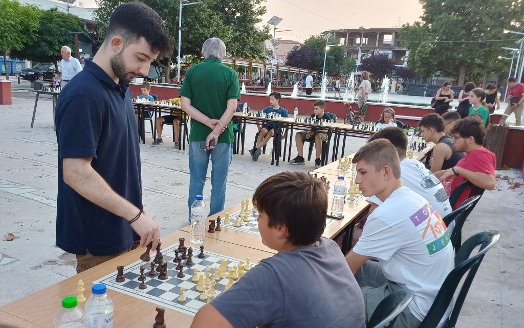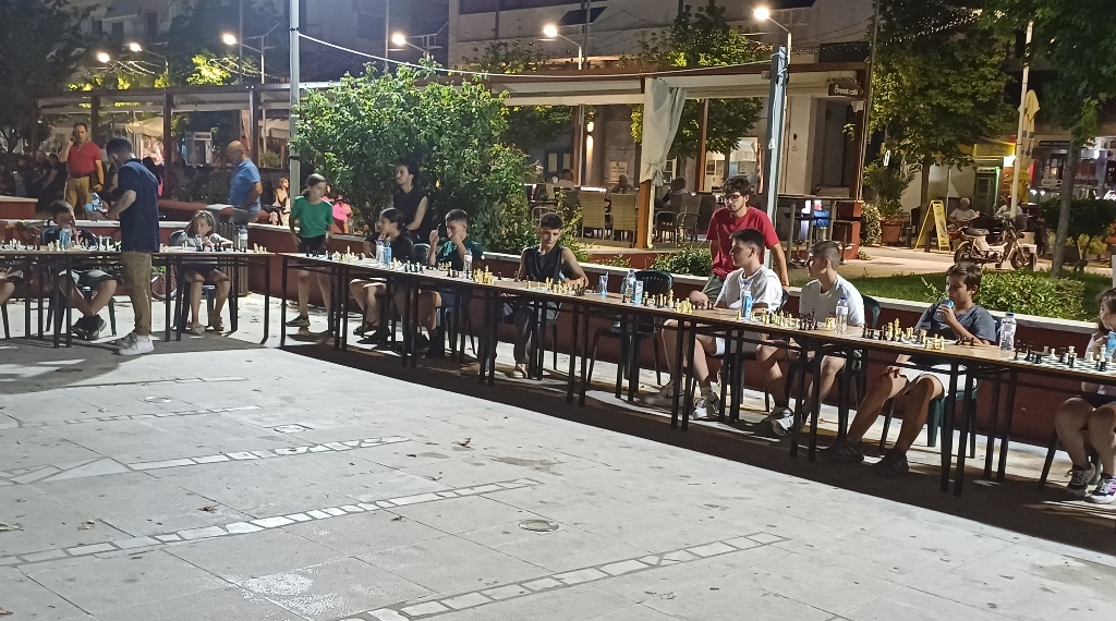 Σε μια όμορφη και ζωντανή εκδήλωση, μαθητές σχολείων από τον Δήμο μας και όχι μόνο συμμετείχαν σε έναν ξεχωριστό αγώνα επίδειξης σκακιού (simultane), γεμίζοντας την πλατεία με ενθουσιασμό, συγκέντρωση και… στρατηγική σκέψη από τις 19:30 έως 10:45.