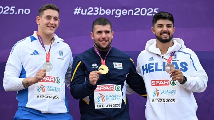 Ένας Κύπριος και δύο Έλληνες ανέβηκαν στο βάθρο στο Ευρωπαϊκό Πρωτάθλημα Κ23 στο αγώνισμα της σφυροβολίας.