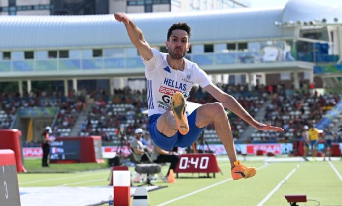 Ο αθλητής του Γιώργου Πομάσκι έδειξε ευδιάθετος από την προθέρμανση, πατώντας τον ελαστικό τάπητα του σταδίου και αυτό ήταν ολοφάνερο στις κινήσεις του. Ξεκίνησε τον αγώνα με ένα… προσεκτικό άλμα στα 8.15 (-0.2) και αμέσως πέταξε στο ρεκόρ, που έκοψε τα πόδια των αντιπάλων του, αφού κανείς δεν από τους υπόλοιπους 15 δεν είχε καλύτερο ατομικό ρεκόρ από το 8.46. Στην τρίτη προσπάθειά του ήταν άκυρος.