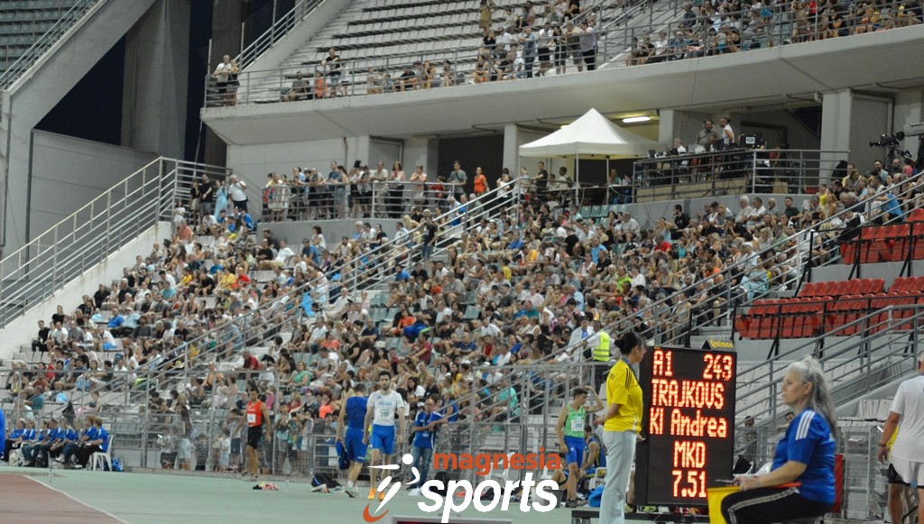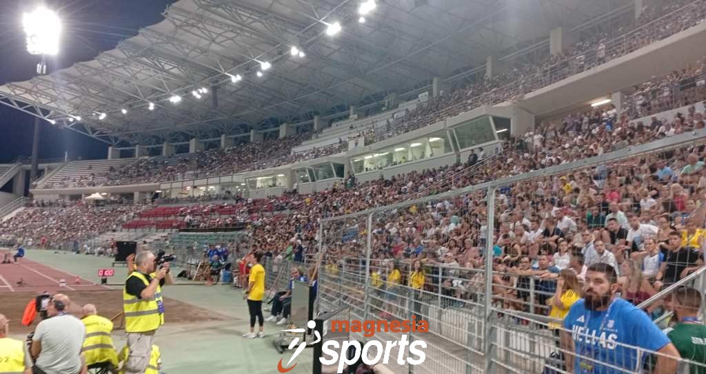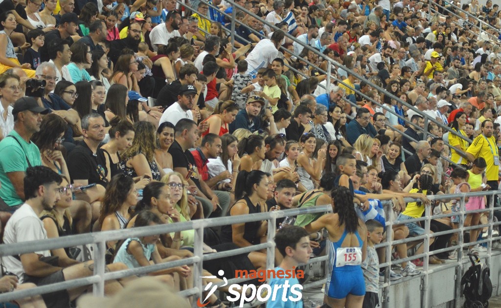 Το θερμόμετρο έδειχνε πάνω από τριάντα βαθμούς την ώρα που ξεκινούσε ο αγώνας του μήκους στο Βαλκανικό Στίβου, στον οποίον μετείχε ο Μίλτος Τεντόγλου, αλλά το κοινό στο Πανθεσσαλικό έδωσε βροντερό παρών γεμίζοντας σχεδόν τη διώροφη σκεπαστή κερκίδα το Σάββατο το βράδυ (26/7).