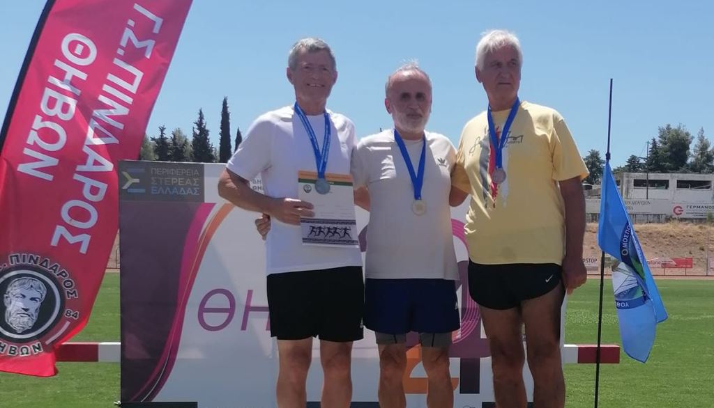 Συνέχεια στις μεγάλες διακρίσεις έδωσε ο Στράτος Συμεωνίδης, που κατέκτησε 3 στα 3 χρυσά, πετυχαίνοντας ισάριθμες πανελλήνιες νίκες στην κατηγορία 70+, στο 36ο Πανελλήνιο Πρωτάθλημα Βετεράνων Αθλητών Στίβου που έγινε το Σαββατοκύριακο 6-7 Ιουλίου στη Θήβα.