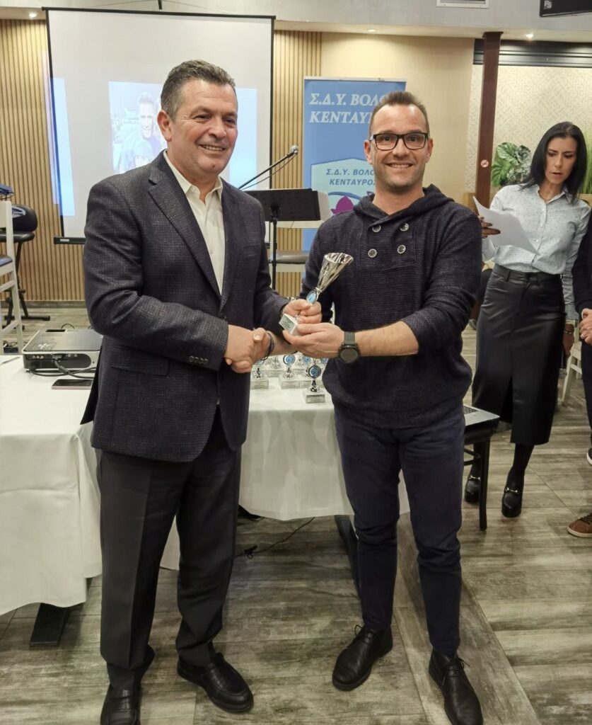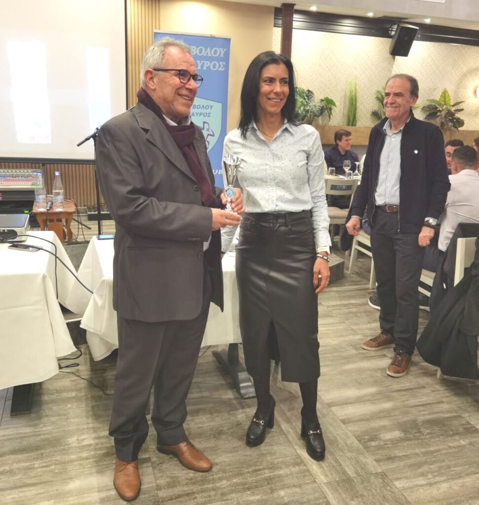 Τέλος μια ιδιαίτερη βράβευση έγινε στον Κώστα Κυριαζή από τα μέλη του συλλόγου, για την προσφορά του στο σύλλογο αλλά και για τη στάση ζωής με την προσήλωσή του στις αρχές του ολυμπιακού πνεύματος και της ευγενούς άμιλλας. Την τιμητική απονομή έκανε ο πρώην Διευθυντής Πρ/θμιας Εκπαίδευσης Μαγνησίας, κ. Ιωάννης Αθανασούλης.