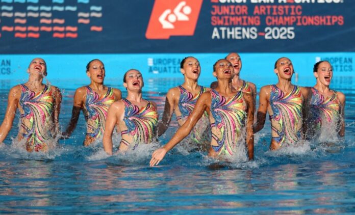 Ανάμεικτα ήταν τα συναισθήματα της Εθνικής ομάδας καλλιτεχνικής κολύμβησης μετά την 5η θέση που κατέλαβε στο τεχνικό ομαδικό στο Ευρωπαϊκό Πρωτάθλημα Εφήβων-Νεανίδων που διεξάγεται στην ανοιχτή πισίνα (Ρ10) στο ΟΑΚΑ.