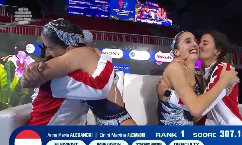 Με αυτό τον τρόπο πανηγύρισαν τον δεύτερο παγκόσμιο τίτλο της καριέρας τους, μετά από εκείνον στο ελεύθερο ντουέτο, το 2023 στη Φουκουόκα. Οι αδελφές Αλεξανδρή συγκέντρωσαν 307.1451 βαθμούς, αφήνοντας δεύτερες τις -επίσης δίδυμες- Κινέζες Γιανχάν Λιν και Γιαντζούν Λιν (301.4057β.) και τρίτες τις Μάγια Ντορόσκο και Τατιάνα Γκαϊντάι από τη Ρωσία (300.2183β.), οι οποίες αγωνίζονται ως ουδέτερες.