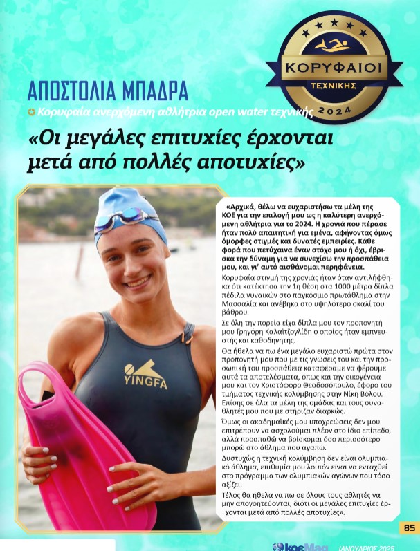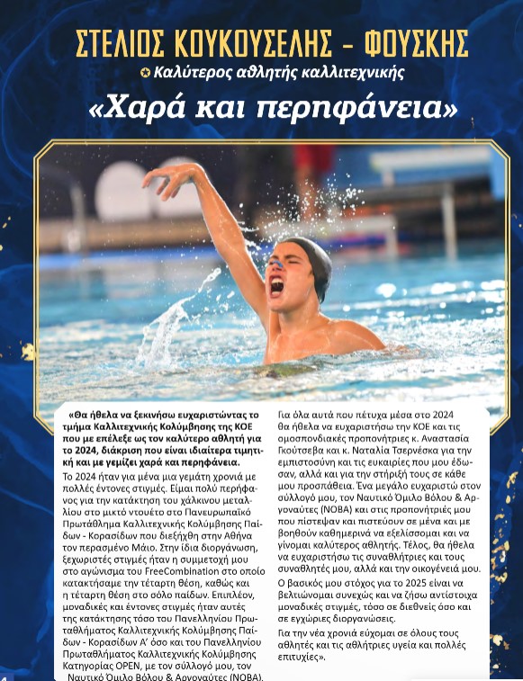 Κυκλοφόρησε το τεύχος του επίσημου περιοδικού της ΚΟΕ για τον Ιανουάριο του 2025 και έχει αναρτηθεί στη σελίδα της σήμερα Σάββατο (28/12). Κυρίαρχο θέμα είναι η ανάδειξη των κορυφαίων αθλητών και αθλητριών του 2024 σε όλα τα σπορ, κάτι που αποτελεί μια ετυμηγορία των τμημάτων της ΚΟΕ και των φορέων που συνδέονται με τα αθλήματα.