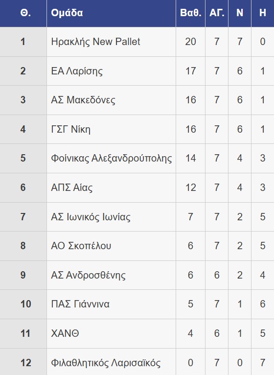 Στα υπόλοιπα αποτελέσματα της 7ης αγωνιστικής: ΠΑΣ Γιάννινα-Αίας Ευόσμου 3-0, ΕΑΛ-Ηρακλής 1-3, Ιωνικός Ιωνίας-Φιλαθλητικός Λαρισαϊκός 3-0, Φοίνικας Αλεξανδρούπολης-Νίκη Αλεξανδρούπολης 3-0, ενώ την Κυριακή (30/11, 17.00) παίζουν ΧΑΝΘ-Ανδροσθένης Θάσου.
