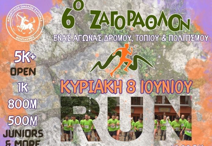 Ο αγώνας ορεινού τρεξίματος Ζαγόραθλον έρχεται για ακόμα μια χρονιά, για έκτη όπως σημειώνουν οι διοργανωτές, στηρίζοντας και αναδεικνύοντας τα αθλητικά και πολιτιστικά δρώμενα της Ζαγοράς, την Κυριακή 8 Ιουνίου.
