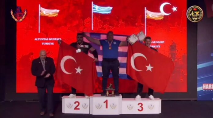 Ο εθνικός μας ύμνος ακούστηκε στην Αττάλεια της Τουρκίας προς τιμήν του Γιώργου Χαραλαμπόπουλου και της επιτυχίας του στο παγκόσμιο πρωτάθλημα bras de fer, ωστόσο οι διοργανωτές δεν σεβάστηκαν τον Έλληνα αθλητή και προκάλεσαν, «κόβοντας» τον στη μέση!