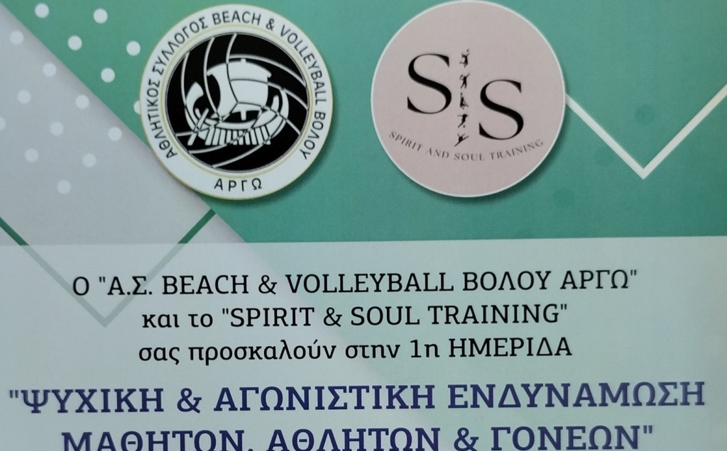 Ο «Α.Σ. ΑΡΓΩ ΒΟΛΟΥ VOLLEYBALL» διοργανώνει στο Volos Palace την Κυριακή 2/6/24 ημερίδα για την ψυχική υγεία αθλητών και μαθητών, σε συνεργασία με το «Spirit and Soul Training» Αθηνών.