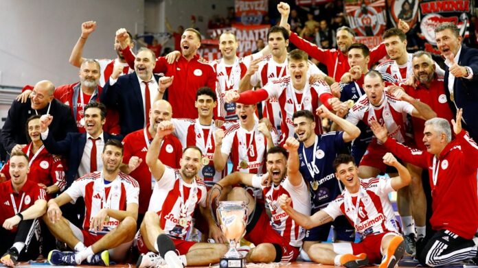 Ο Ολυμπιακός επιβεβαίωσε τον τίτλο του φαβορί και κάνοντας μία σπουδαία εμφάνιση νίκησε καθαρά με 3-1 σετ τον ΠΑΟΚ στον τελικό του Κυπέλλου βόλεϊ στην Άρτα.