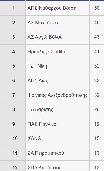 Πλέον μείωσε στους δύο βαθμούς τη διαφορά από τη δεύτερη θέση, στην οποία βρίσκονται οι Μακεδόνες (45-43) και διατήρησε το +2 από τον τέταρτο Ηρακλή κι ενώ απομένουν δύο αγωνιστικές για το τέλος της κανονικής διάρκειας, ενώ η ομάδα του Βαγγέλη Σταθόπουλου εκτός του ότι διεκδικεί πλέον τη δεύτερη θέση, εξασφάλισε την είσοδο στα πλέι οφ.
