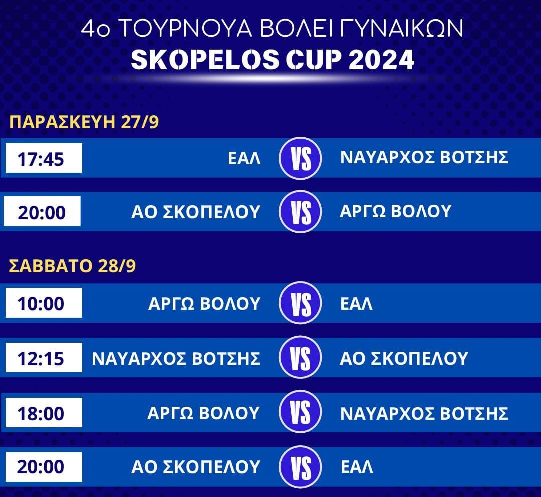 Για τέταρτη χρονιά, από τις 27 έως και τις 29 Σεπτεμβρίου, η ομάδα βόλεϊ Γυναικών του ΑΟ Σκοπέλου, στο πλαίσιο της καλύτερης προετοιμασίας της, διοργανώνει φιλικό τουρνουά με τη συμμετοχή τριών ομάδων που συμμετέχουν στο πρωτάθλημα της Α2 εθνικής κατηγορίας!