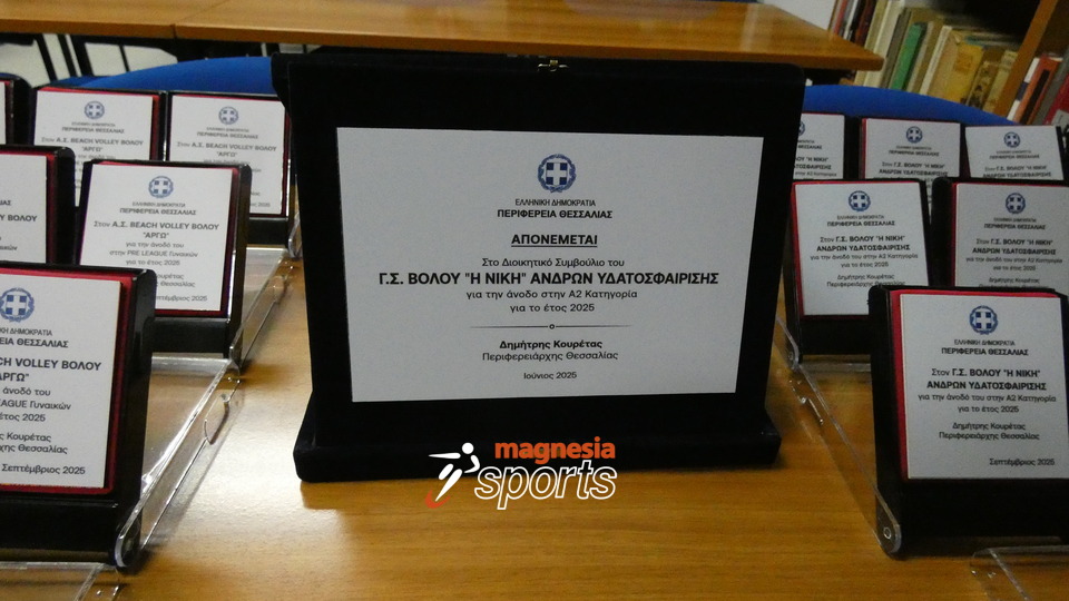 Έχοντας ήδη πανηγυρίσει την άνοδο, οι ομάδες πόλο και μπάσκετ Ανδρών της Νίκης Βόλου και η ομάδα βόλεϊ Γυναικών της Αργούς Βόλου, βραβεύτηκαν για τις επιτυχίες τους από την Περιφέρεια Θεσσαλίας το βράδυ της Δευτέρας 15/09.