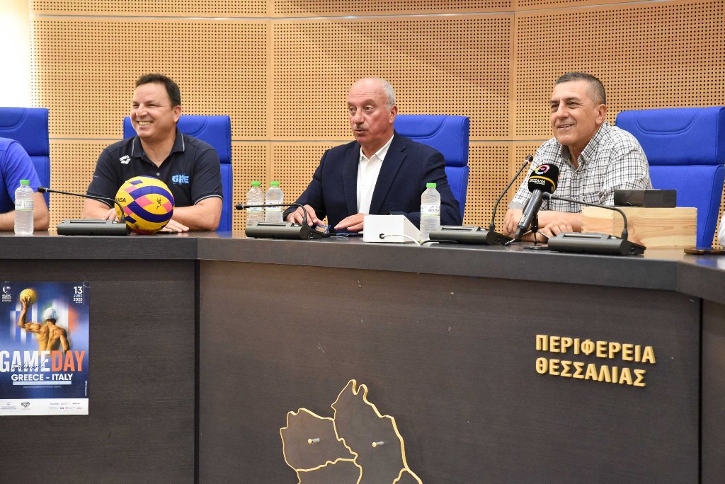 Με αφορμή την πραγματοποίηση της φιλικής αναμέτρησης το βράδυ της Παρασκευής (13/6, 21.15) στο Κολυμβητήριο της Νέας Πολιτείας στη Λάρισα, μεταξύ των Εθνικών Ομάδων Ελλάδας-Ιταλία, έλαβε χώρα συνέντευξη Τύπου, το μεσημέρι της Τετάρτης, στην αίθουσα του Περιφερειακού Συμβουλίου, με τη συμμετοχή του περιφερειάρχη Θεσσαλίας, Δημήτρη Κουρέτα, του δημάρχου Λαρισαίων, Θανάση Μαμάκου, του αντιπεριφερειάρχη Αθλητισμού και Πολιτισμού, Σωτήρη Σουλούκου, του αντιδημάρχου Παιδείας και Αθλητισμού, Ηρακλή Γερογιώκα, του προέδρου της ΚΟΕ, Κυριάκου Γιαννόπουλου και την αποστολής της Εθνικής ομάδας.