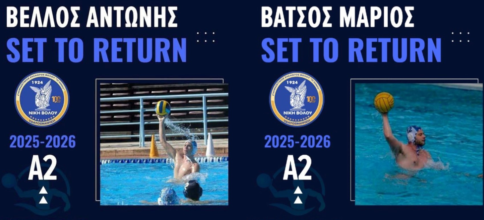 Με Βέλλο και Βάτσο η ομάδα πόλο της Νίκης έφτασε τις πέντε ανανεώσεις.