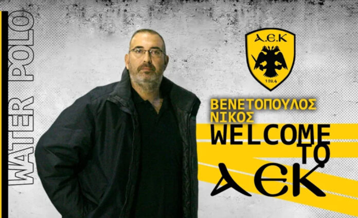 Η ΑΕΚ βρίσκεται στην ευχάριστη θέση να ανακοινώσει την έναρξη της συνεργασίας της με τον Νίκο Βενετόπουλο, ο οποίος αναλαμβάνει προπονητής της ανδρικής ομάδας Πόλο του Συλλόγου για τα επόμενα τρία έτη.