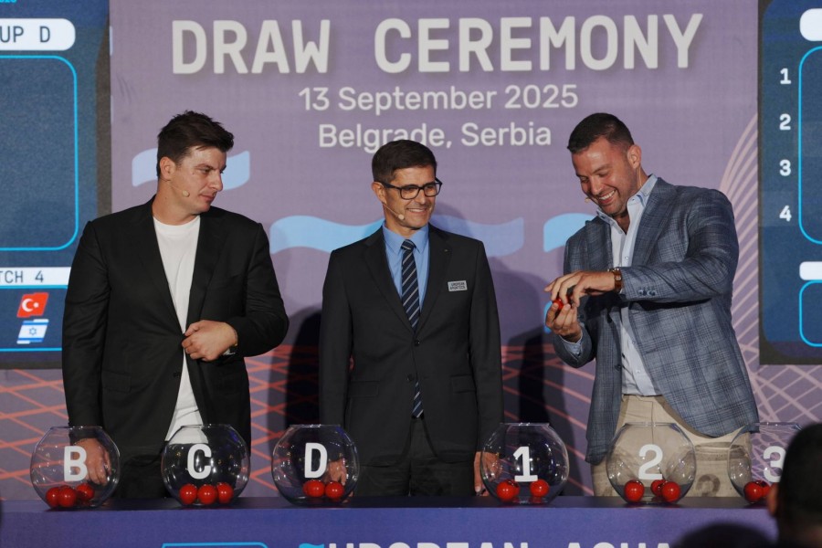 Παρουσία του Προέδρου της ΚΟΕ Κυριάκου Γιαννόπουλου, με την ιδιότητά του ως Αντιπροέδρου της European Aquatics, έγινε το βράδυ του Σαββάτου (13/9) στο Βελιγράδι η κλήρωση των Ομίλων του Ευρωπαϊκού πρωταθλήματος υδατοσφαίρισης Ανδρών, που θα διεξαχθεί στην πρωτεύουσα της Σερβίας 10-25 Ιανουαρίου 2026, με τη συμμετοχή και της Εθνικής μας ομάδας, χάλκινης παγκόσμιας πρωταθλήτριας του 2025.