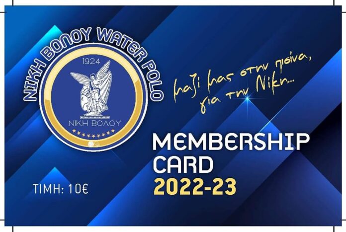 «Το τμήμα υδατοσφαίρισης της Νίκης Βόλου ανακοινώνει πως διατίθενται σε κυκλοφορία οι «Niki Volou Water Polo Membership Cards», με κόστος 10 ευρώ. Οι κάρτες μέλους του τμήματος είναι εδώ για ένα ισχυρό κυανόλευκο πόλο, βασισμένο στη δυναμική του λαού της ομάδας μας.