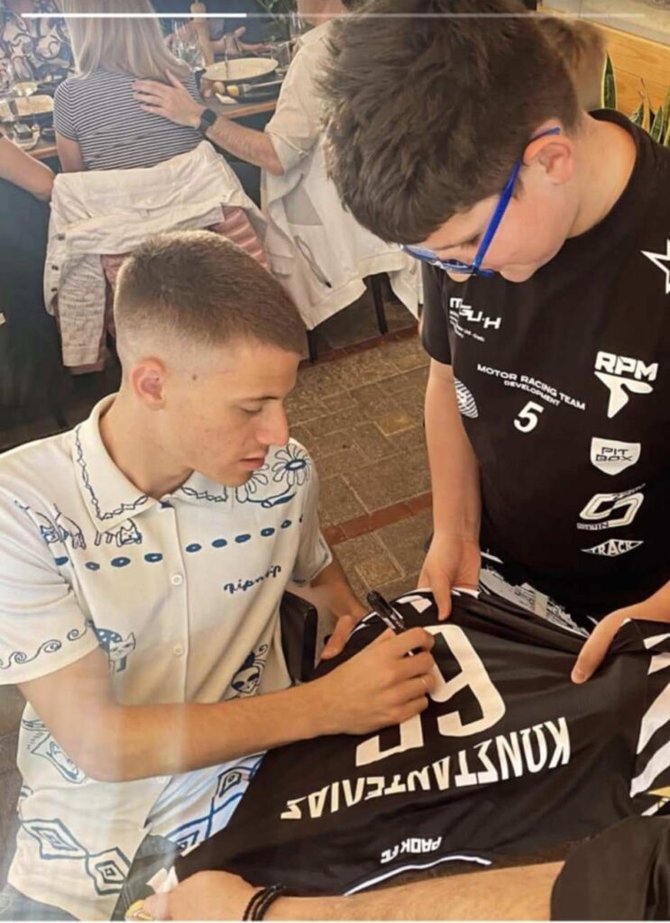 Όπως είναι φυσικό, η παρουσία του έγινε αμέσως αντιληπτή και όπως φαίνεται και στη φωτογραφία υπέγραψε ακόμη και φανέλες με το όνομά του σε μικρούς θαυμαστές του.
