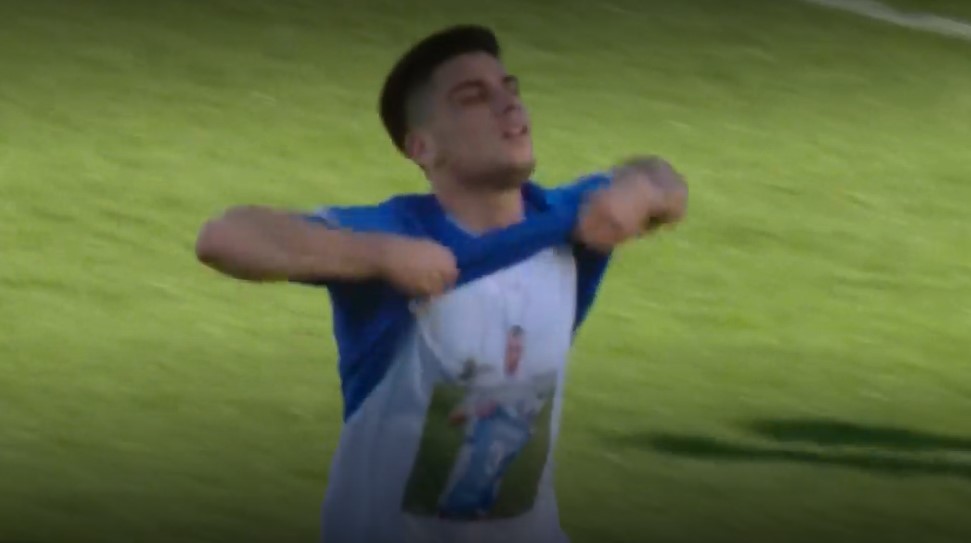 Και φυσικά εννοούμε την αφιέρωση του φοβερού γκολ που πέτυχε στον Παύλο Κυριακίδη και στην Ιωάννα, τη σύζυγό του, που έφυγε από τη ζωή πριν λίγο καιρό, έχοντας κάτω από τη φανέλα τυπώσει τη φωτογραφία του συμπαίκτη του, που κρατά τη φανέλα που του είχε χαρίσει ο Ηρακλής με το όνομα της Ιωάννας.