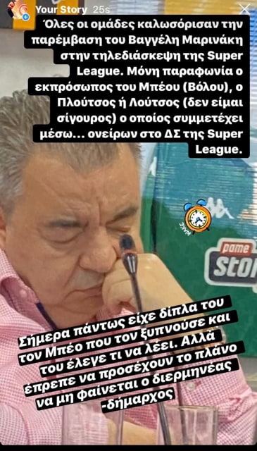 Με ένα χιουμοριστικό σχόλιο και ένα χαρακτηριστικό φωτογραφικό στιγμιότυπο από την τηλεδιάσκεψη της Super League, τρολάρει ο αντιπρόεδρος του Ολυμπιακού Κώστας Καραπαπάς τον αντιπρόεδρο του ΝΠΣ Βόλος, Παναγιώτη Λούτσο. Όπως δημοσιεύθηκε σε αθηναϊκά ΜΜΕ την πρώην Πύδνα Κίτρους εκπροσώπησαν ο κ. Λούτσος και ο Δήμαρχος Βόλου Αχιλλέας Μπέος, ο οποίος εικάζεται ότι είχε δηλωθεί ως “διερμηνέας” στο “φύλλο” της σύσκεψης προκειμένου να δίνει στον κ. Λούτσο να καταλάβει την ορολογία που χρησιμοποιούσαν οι παράγοντες των ομάδων, καθότι καινούριος στο ποδόσφαιρο. Εκεί όμως που του μιλούσε ο Αχιλλέας Μπέος, φέρεται να τον πήρε ο…ύπνος, όπως καταδεικνύει το φωτογραφικό στιγμιότυπο που ανέβασε στο instagram ο παράγοντας των ερυθρόλευκων.