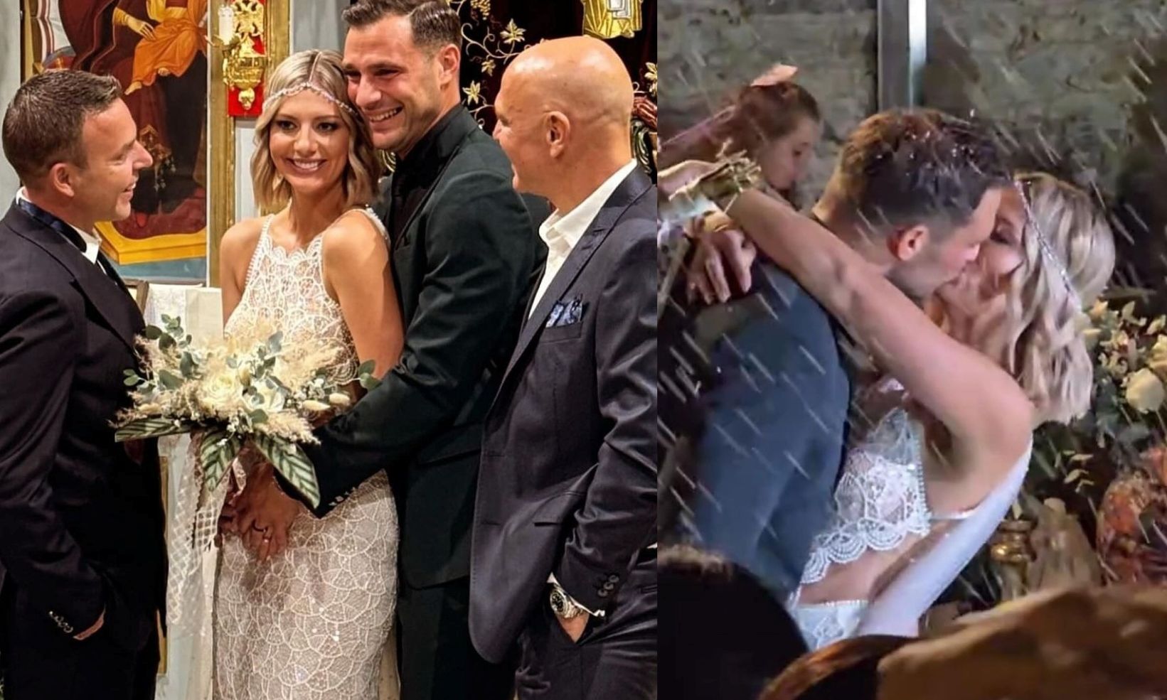 Το ζευγάρι μάλιστα κατά την έξοδό του από την εκκλησία αντάλλαξε ένα παθιασμένο φιλί, ενώ οι καλεσμένοι τους δεν σταμάτησαν να τους πετούν ρύζι.