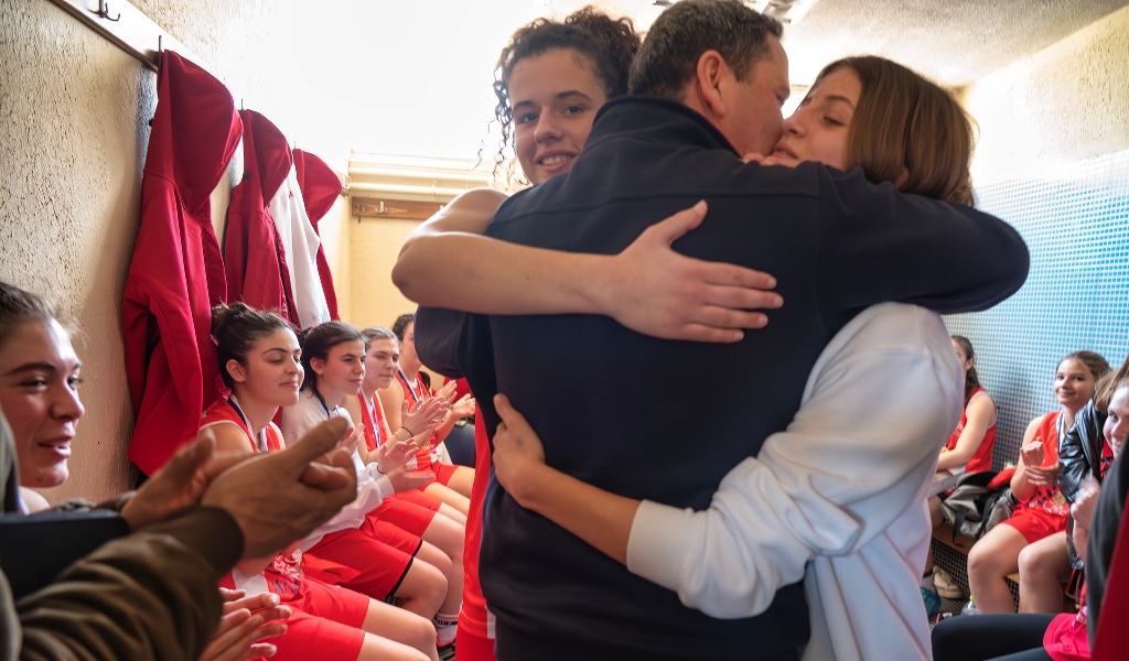 *Στη φωτογραφία ο Γιάννης Σιουμουρέκης αγκαλιάζει τις δύο του κόρες, Βασιλική και Στυλιανή, στα αποδυτήρια σε μια γιορτή που είχε κάνει ο Ολυμπιακός Βόλου, στην οποία τα κορίτσια έδωσαν μετάλλια στους γονείς τους, για να τους ευχαριστήσουν για τη συμπαράσταση, μετά την κατάκτηση Πανθεσσαλικού πρωταθλήματος κορασίδων.