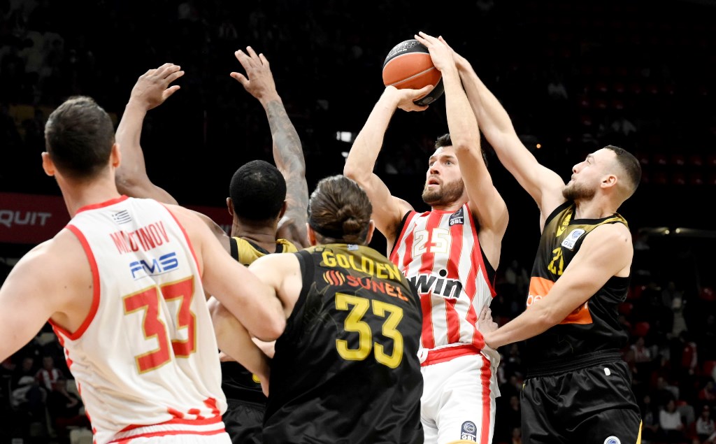 Ο Ολυμπιακός όμως προσπέρασε πριν το τέλος του ημιχρόνου και κυριάρχησε στο δεύτερο ημίχρονο για να φτάσει στη 14η νίκη του σε 16 ματς, στηριζόμενος στην τετράδα των Πίτερς (20π, 6ρ), Μιλουτίνοφ (9π, 11ρ), Ουίλιαμς-Γκος (14π, 5/5 σουτ) και Παπανικολάου (15π, 6ρ). Για την ΑΕΚ, που υποχώρησε στο 8-8, πρώτος σκόρερ ήταν ο Χάντερ Χέιλ με 14 πόντους αλλά με 3/11 σουτ, ενώ θετικοί ήταν οι Νετζήπογλου (9π, 4ασ.), Γκόλντεν (10π, 3ρ, 4ασ) και Γκρέι (10π, 5ρ).