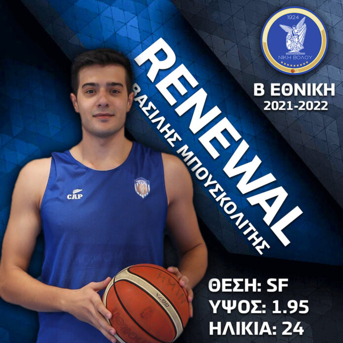 «Η Δ.Ε. του τμήματος καλαθοσφαίρισης της Νίκης Βόλου ανακοινώνει την ανανέωση της συνεργασίας, με μορφή δανεισμού, για την ερχόμενη σεζόν με τον αθλητή Βασίλη Μπουσκολίτη (24, 1.95, SF).