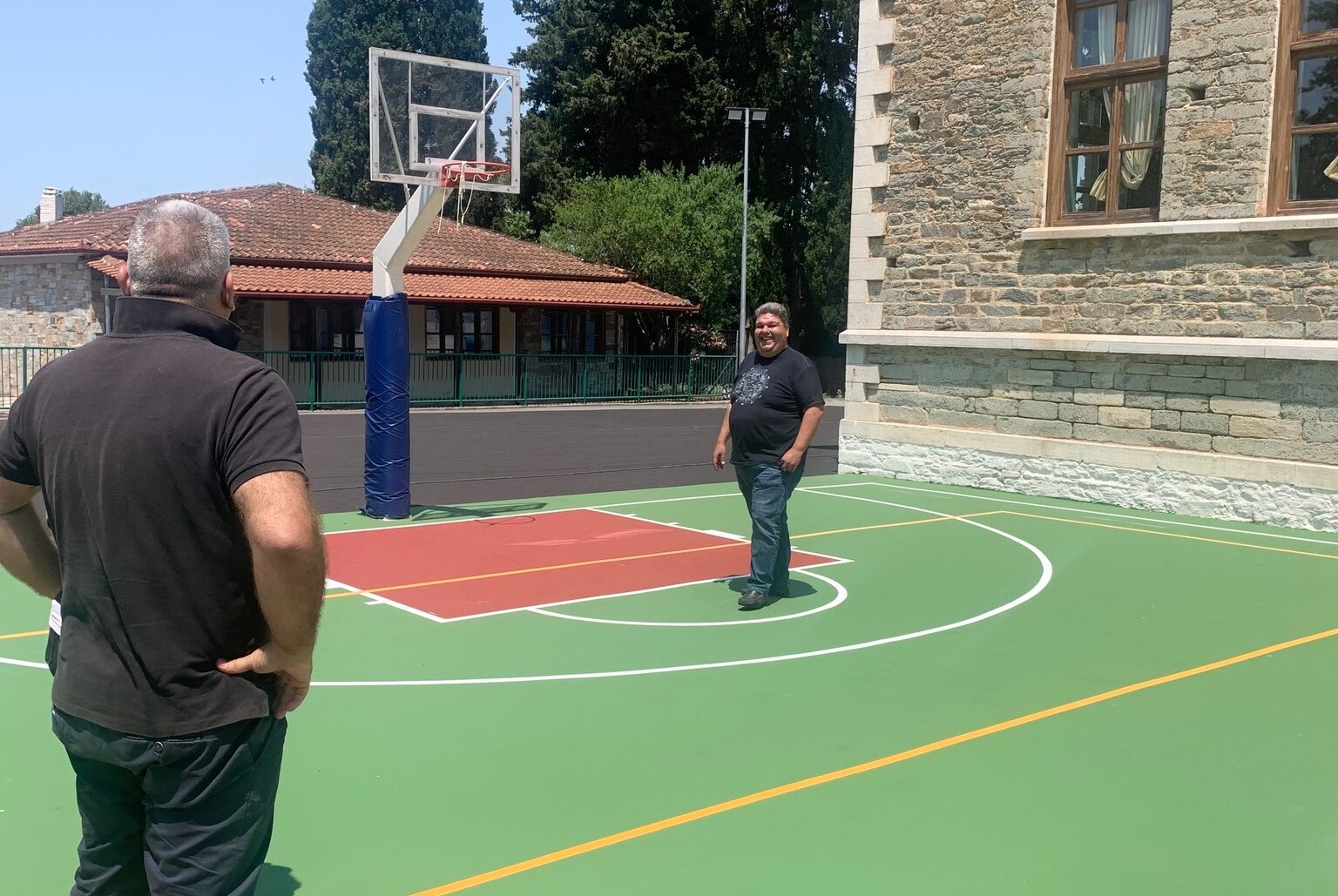 Στο ανακαινισμένο γήπεδο βρέθηκε ο Δήμαρχος Νοτίου Πηλίου Μιχάλης Μιτζικός με την πρόεδρο της Πρωτοβάθμιας Σχολικής Επιτροπής, Ιφιγένεια Γαρυφάλλου και τον πρόεδρο της Επιτροπής Παιδείας, δημοτικό σύμβουλο Ι. Διανέλλο.