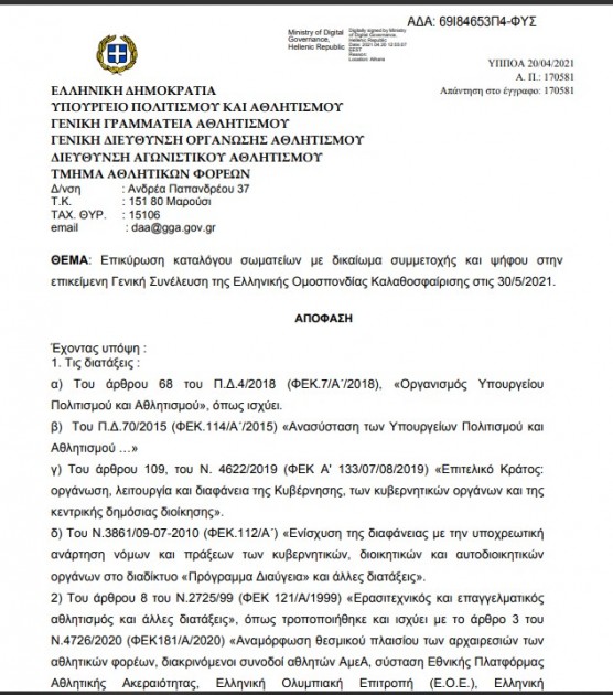 Η τωρινή διοίκηση της ΕΟΚ ακολούθησε το μητρώο της ΓΓΑ, καθώς αυτή τη φορά έστειλε λίστα με 512 σωματεία και όχι με περίπου χίλια, που είχε στείλει πριν τις εκλογές, που αρχικά ήταν προγραμματισμένες για τις 28/3.